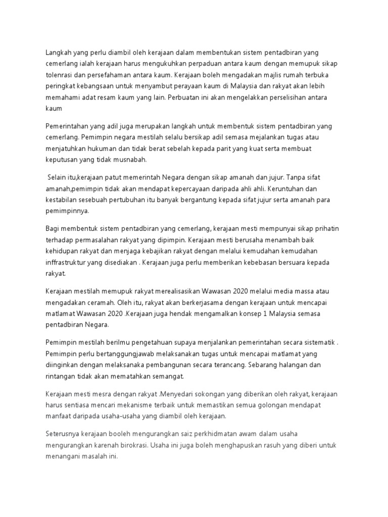 Langkah Yang Perlu Diambil Oleh Kerajaan Dalam Membentukan Sistem Pentadbiran Yang Cemerlang Ialah Kerajaan Harus Mengukuhkan Perpaduan Antara Kaum Dengan Memupuk Sikap Tolenrasi Dan Persefahaman Antara Kaum Pdf